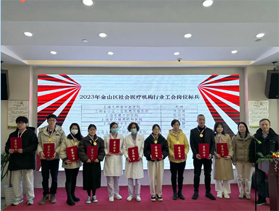 12月28日下午在金山区社会医疗机构行业工会联合会和金山区社会医疗机构协会举办的“弘扬工匠精神、培育社医品牌”劳动竞赛闭幕仪式上,我院陈利萍同志荣获“2023年度金山区社会医疗机构工会岗位标兵”称号。